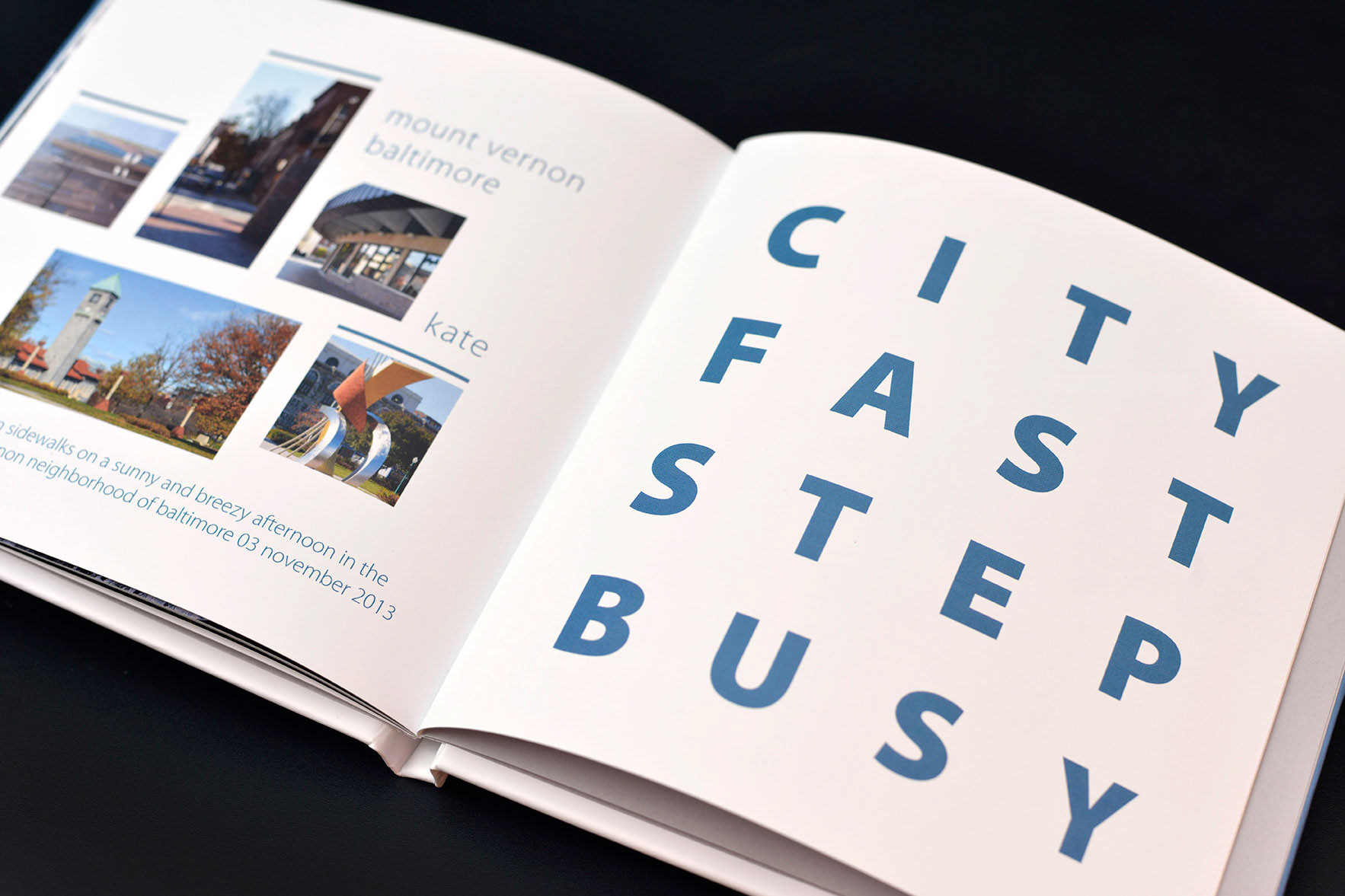 Personal project: This type book and set of blocks were created as part of a project entitled "Six Walks" during a typography studio class in the Integrated Design MFA program at the University of Baltimore.