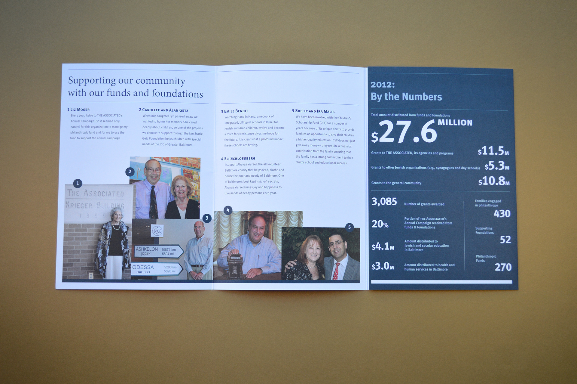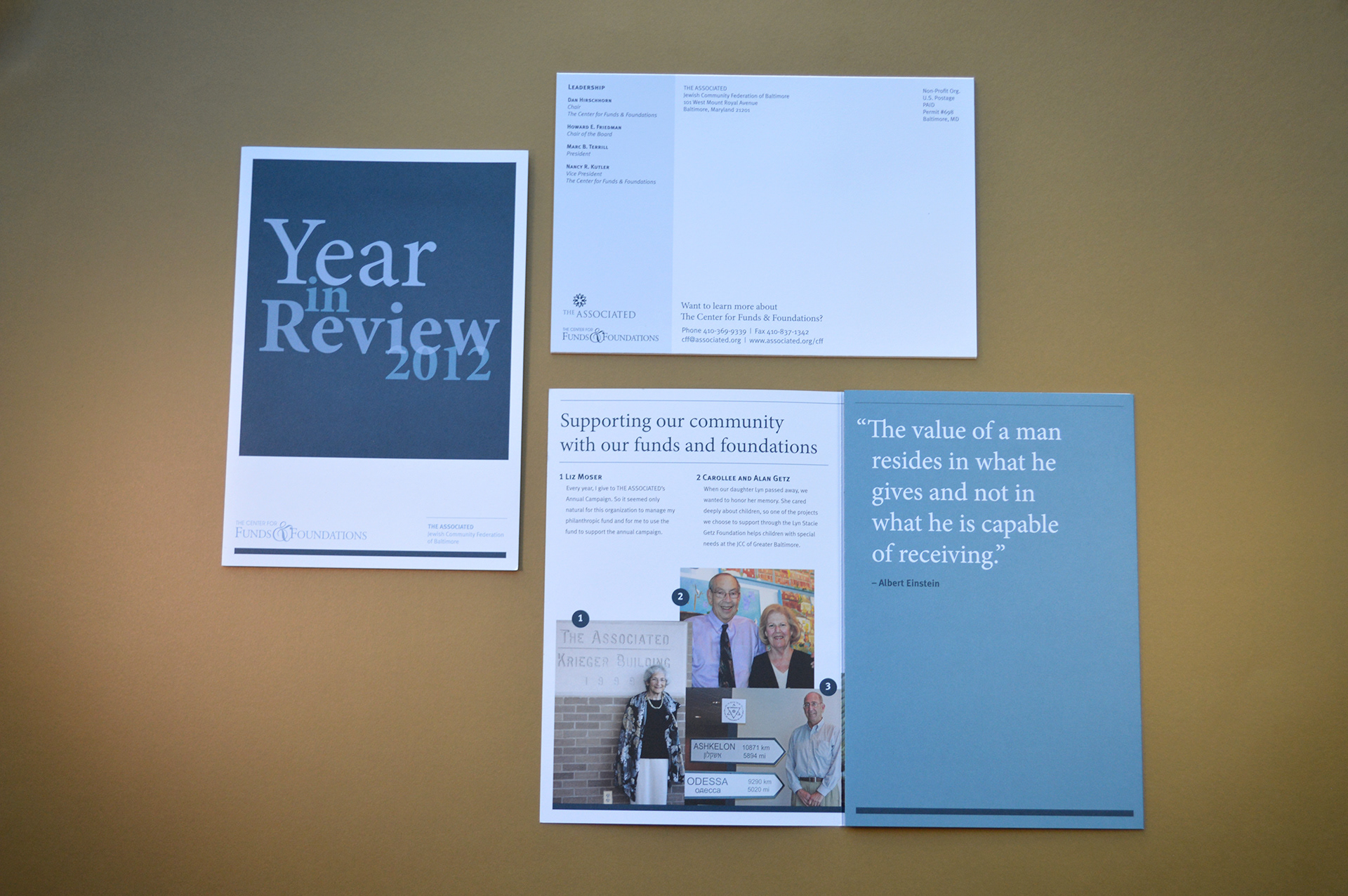 The Center for Funds and Foundations Year in Review focused on the philanthropic activities for funds managed by the Jewish Federation of Baltimore. The piece highlighted individual donors and their causes and as well provided the yearly financials for the foundation.